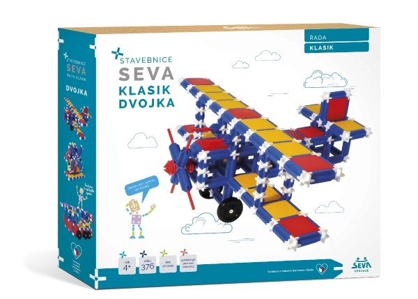 Το σετ κατασκευών SEVA klasik dvojka είναι ένα δημιουργικό πολυτεχνικό σετ για παιδιά από 4 ετών, που χάρη στους μεταλλικούς άξονες επιτρέπει την κατασκευή κινητών μοντέλων – ραντάρ, καρουζέλ και άλλα. Αναπτύσσει τη λεπτή κινητικότητα και τη φαντασία, είναι συμβατό με όλα τα σετ SEVA, χωρίς φθαλικές ενώσεις και κατασκευάζεται στην Τσεχική Δημοκρατία σύμφωνα με το πρότυπο EN 71.