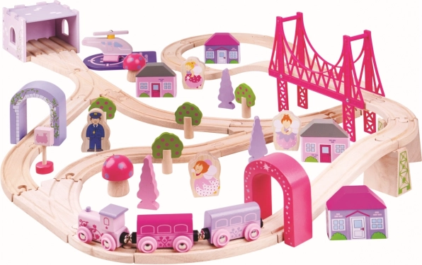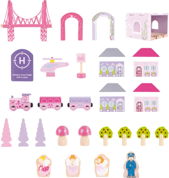 Αυτή η σιδηροδρομική πίστα είναι ιδανική για παιδιά που αγαπούν το παραμυθένιο και πριγκιπικό θέμα. Το σετ περιλαμβάνει 75 κομμάτια, όπως γέφυρες, τούνελ, σπιτάκια και δέντρα, επιτρέποντας στα παιδιά να δημιουργήσουν τον δικό τους μαγικό κόσμο.