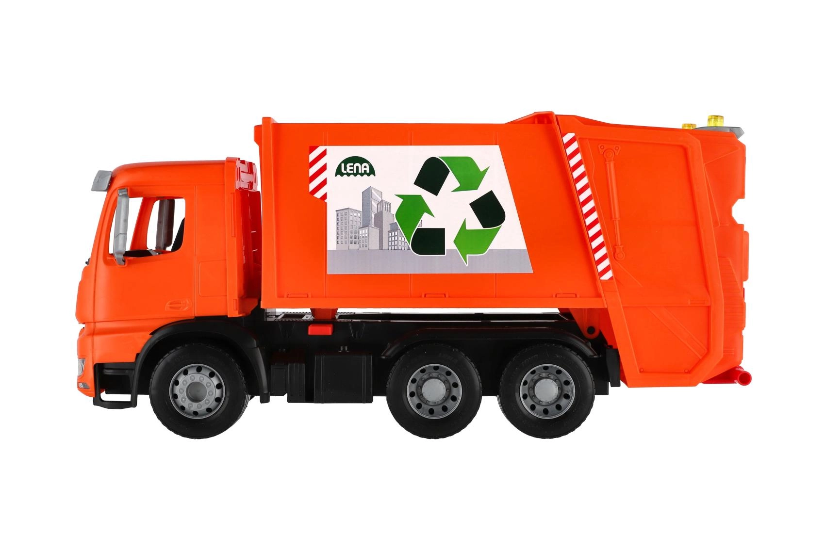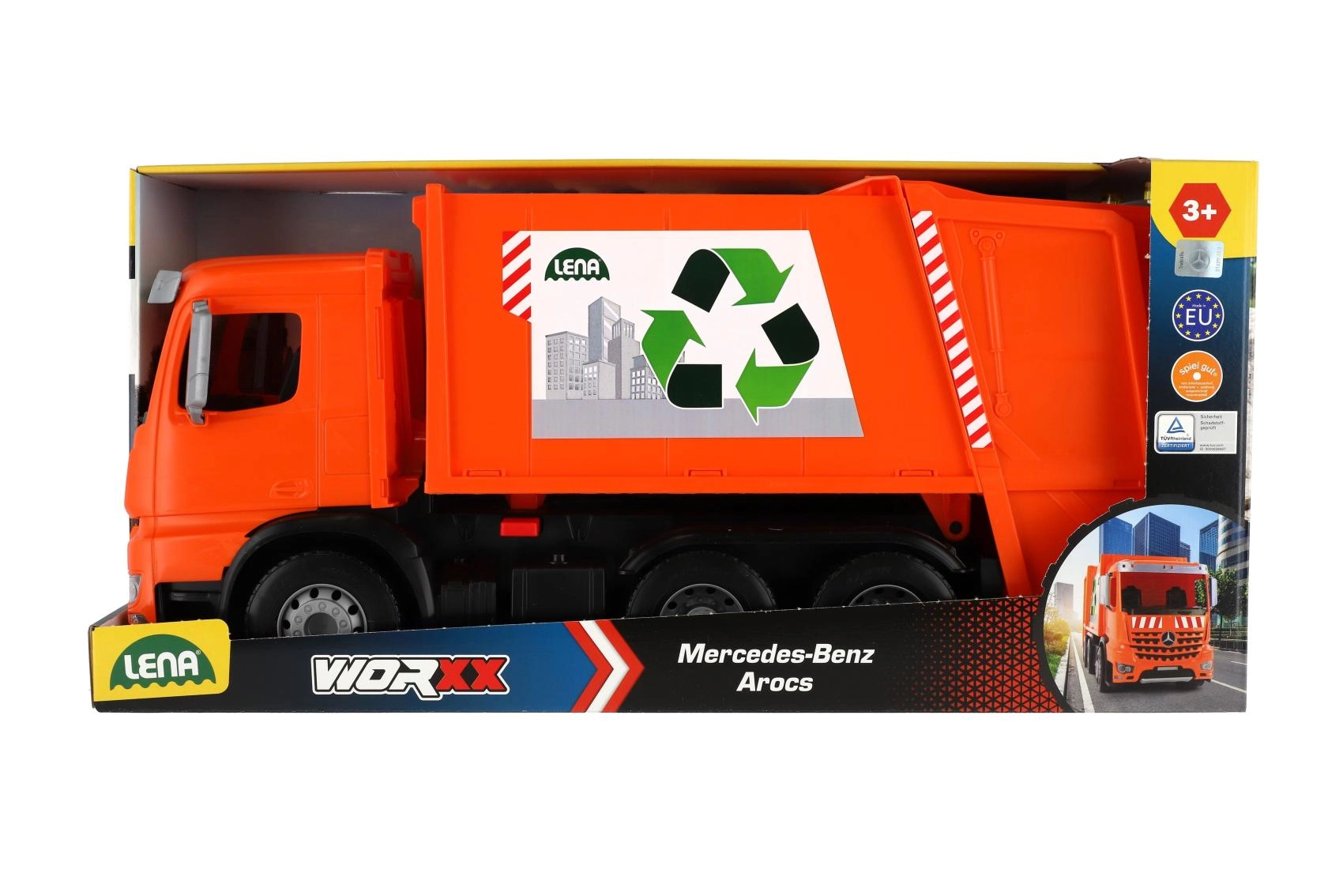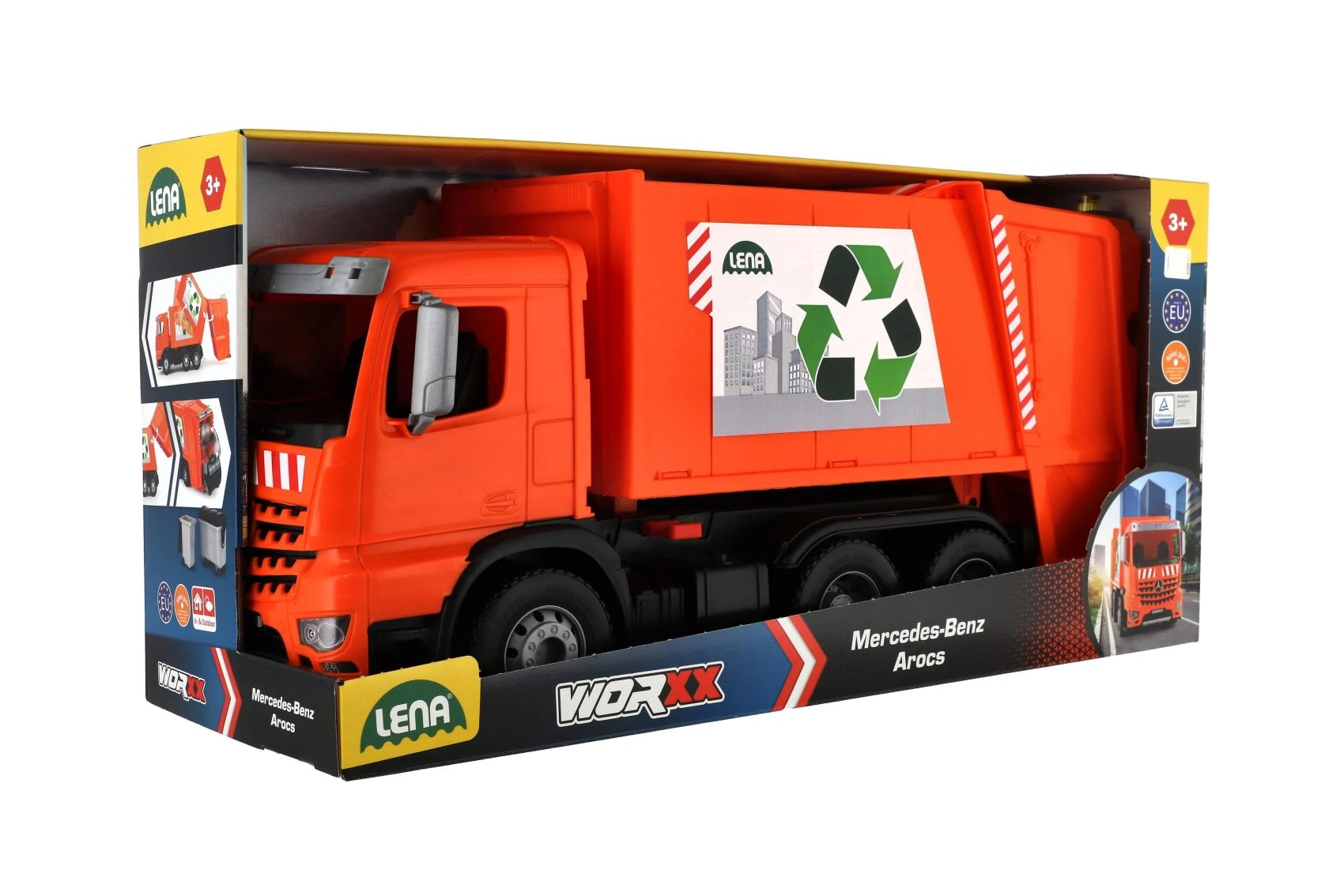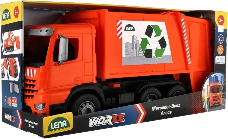 Το απορριμματοφόρο MERCEDES AROCS της LENA είναι ένα λεπτομερές όχημα για μικρούς λάτρεις της τεχνολογίας. Χάρη στη στιβαρή κατασκευή από ποιοτικό, ανθεκτικό πλαστικό και τους ισχυρούς μεταλλικούς άξονες των τροχών, αντέχει στο καθημερινό παιχνίδι μέσα και έξω. Το λειτουργικό πίσω μέρος με ασφάλεια επιτρέπει ασφαλή φόρτωση και ανατροπή απορριμμάτων.