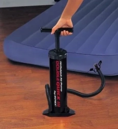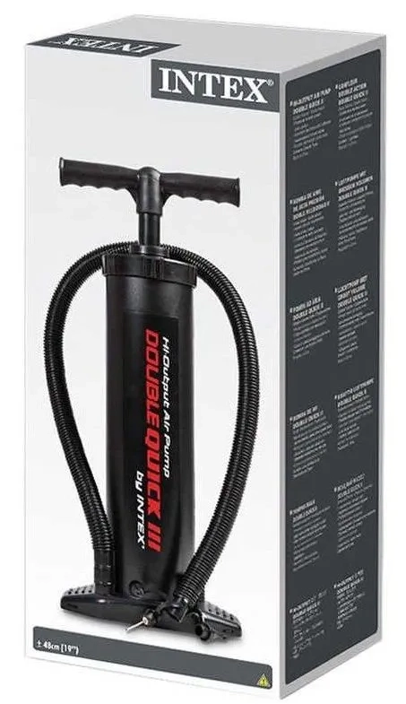 Η χειροκίνητη αντλία Intex Double Quick III είναι ανθεκτική και σταθερή αντλία διπλής ενέργειας, που φουσκώνει γρήγορα στρώματα, βάρκες και άλλα φουσκωτά προϊόντα. Χάρη στη διπλή λειτουργία – κατά την πίεση και την ανύψωση – προσφέρει μεγαλύτερη ροή αέρα και επιταχύνει το φούσκωμα χωρίς κόπο. Η σταθερή βάση στήριξης και οι 3 καθολικές άκρες διευκολύνουν τη χρήση στο σπίτι και στο ταξίδι.