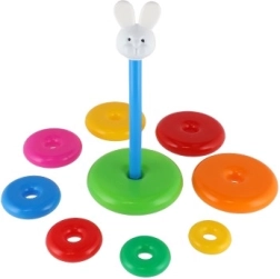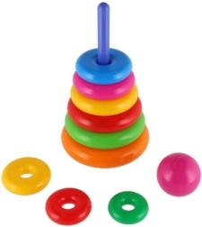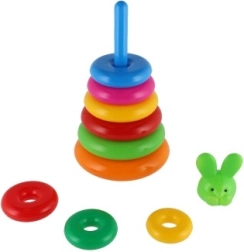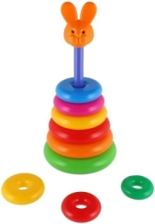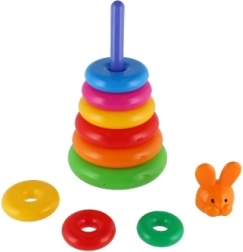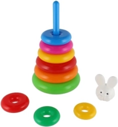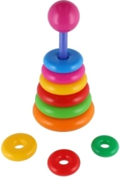 Αυτή η συναρμολογούμενη πυραμίδα με πολύχρωμα δαχτυλίδια είναι ιδανικό πρώτο κατασκευαστικό παιχνίδι. Τα παιδιά περνούν τα δαχτυλίδια στη ράβδο και τα τοποθετούν από το μεγαλύτερο στο μικρότερο, εξασκώντας φυσικά τη λεπτή κινητικότητα, την υπομονή και τη λογική σκέψη. Η βάση αποτελείται από σταθερή πλαστική βάση με ράβδο και αποσπώμενο επάνω μέρος (ανάλογα με την εκδοχή).