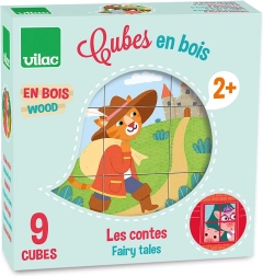 Τα ξύλινα τουβλάκια Vilac Ιστορίες προσφέρουν στα παιδιά χαρά στην ανακάλυψη και στη συναρμολόγηση. Από εννέα στιβαρά τουβλάκια συνθέτετε έξι διαφορετικά παραμυθένια θέματα, που καλλιεργούν τη φαντασία και μαθαίνουν στα παιδιά τη συγκέντρωση. Χάρη στο ανθεκτικό ξύλο και την ποιοτική εκτύπωση, το παιχνίδι είναι ανθεκτικό και κατάλληλο για καθημερινό παιχνίδι.