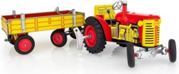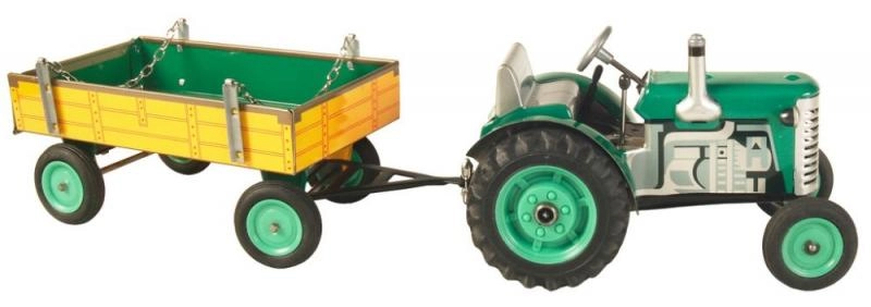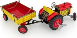 Κλασικό μεταλλικό παιχνίδι για μικρούς και μεγάλους φίλους της αγροτικής τεχνολογίας: τρακτέρ Zetor με αποσπώμενο τρέιλερ με ελατηριωτό μηχανισμό με κλειδί. Προσφέρει 3 ταχύτητες (εμπρός, νεκρά, όπισθεν), λειτουργικό τιμόνι και χειρόφρενο. Άψογη τσεχική χειροποίητη κατασκευή, πιστοποίηση Ασφαλούς Παιχνιδιού και ανθεκτική κατασκευή από τυπωμένο λαμαρίνα με πλαστικούς τροχούς.