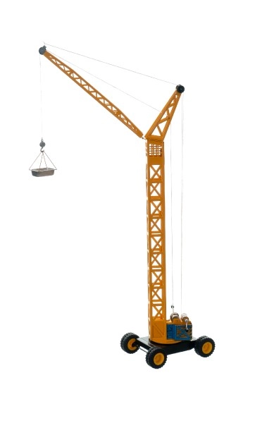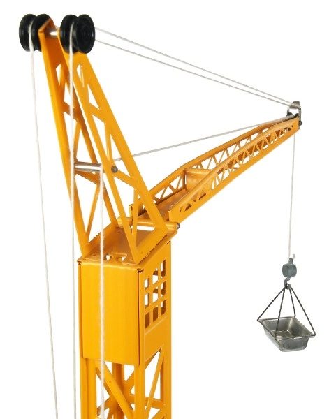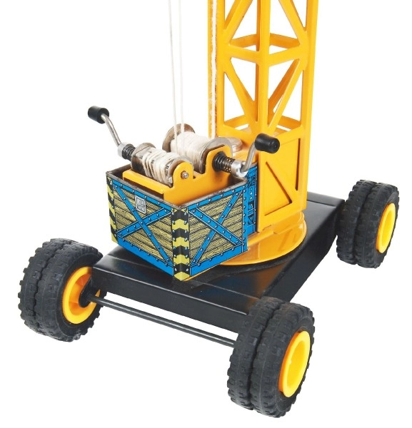 Ο γερανός διαθέτει περιστρεφόμενο πύργο, συρόμενο βραχίονα και σύστημα ανύψωσης φορτίων. Ιδιαίτερα θα σας ικανοποιήσει ο χειροκίνητος μηχανισμός με μανιβέλα, που επιτρέπει στα παιδιά να εξασκούν τις κινητικές δεξιότητες και τον συντονισμό κινήσεων. Το μήκος του βραχίονα είναι 25 cm και ολόκληρος ο γερανός έχει ύψος 50 cm.