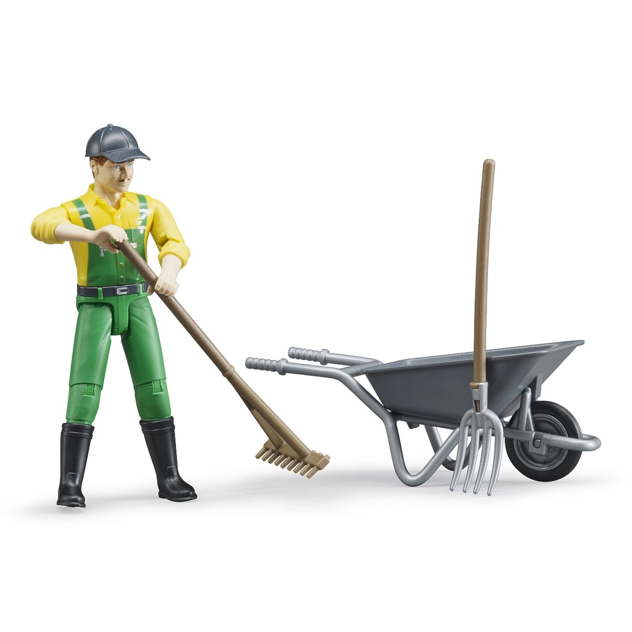 Ο Bruder BWORLD αγρότης με αξεσουάρ είναι ιδανικός για παιδιά που αγαπούν να ανακαλύπτουν τη ζωή στη γεωργία. Η φιγούρα του αγρότη διαθέτει αρθρωτά άκρα, επιτρέποντάς της να κρατά εργαλεία όπως πιρούνα και τσουγκράνα, προσφέροντας ρεαλιστικό και διασκεδαστικό παιχνίδι.