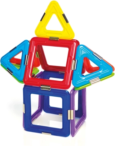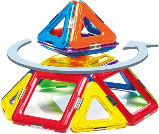 Το σετ περιλαμβάνει συνολικά 6 μαγνητικά τετράγωνα, 8 τρίγωνα και 1 spinner, προσφέροντας ευρύ πεδίο για πειραματισμό. Είναι όχι μόνο διασκεδαστικό αλλά και εκπαιδευτικό, αναπτύσσοντας δεξιότητες όπως χωρική αντίληψη, συντονισμό, συγκέντρωση και δημιουργικότητα.
