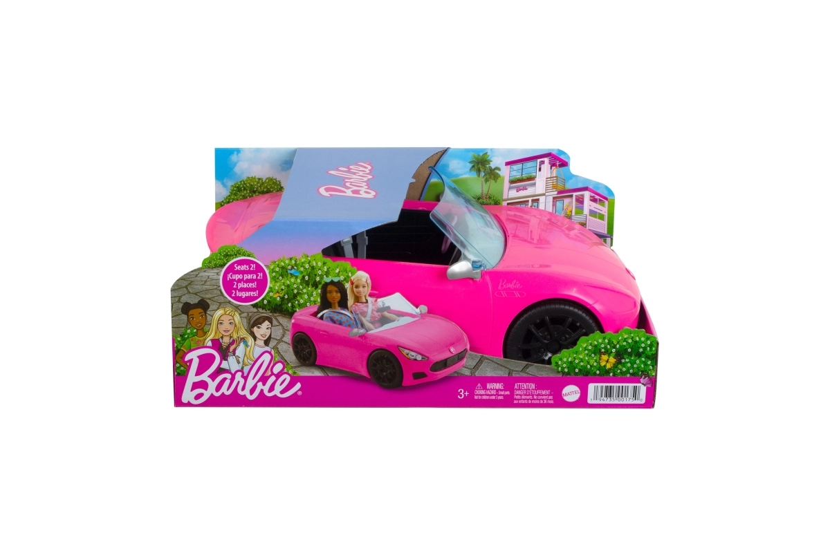 Το κάμπριο Barbie προσφέρει ρεαλιστικές λεπτομέρειες στο κλασικό στυλ της Barbie, όπως εξατομικευμένη πινακίδα και το σύμβολο της Barbie στο καπό. Καθίστε δύο κούκλες Barbie (πωλούνται ξεχωριστά) στα καθίσματα και σπρώξτε το όχημα για να ξεκινήσει η περιπέτεια χάρη στους περιστρεφόμενους τροχούς. Οι κούκλες πωλούνται ξεχωριστά. Τα χρώματα και οι διακοσμήσεις ενδέχεται να διαφέρουν.