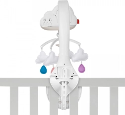 - Μηχανοκίνητη κίνηση: Μαγεύει και ηρεμεί το παιδί σας με την κίνηση των πολύχρωμων συννεφάκιων και τα απαλά φωτάκια.