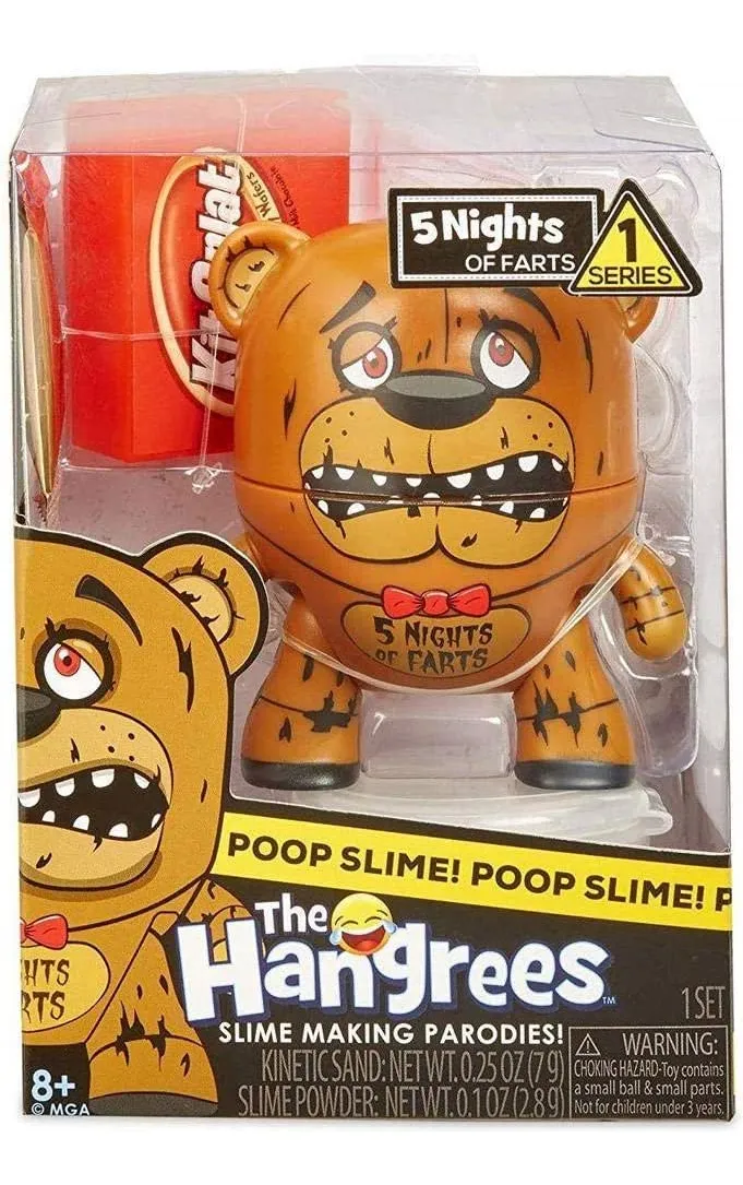 Ο Hangrees Πεινασμένος από τη σειρά 1 προσφέρει αυθεντικό χιούμορ και δημιουργικό παιχνίδι. Το παιδί ταΐζει τη φιγούρα, την ανακινεί και σε λίγο δημιουργείται γλίτσα, την οποία μπορείτε να αποθηκεύσετε με ασφάλεια στη μίνι τουαλέτα που περιλαμβάνεται. Τα διασκεδαστικά αξεσουάρ και οι αναφορές σε γνωστές μάρκες δίνουν στο παιχνίδι μοναδικό στιλ.