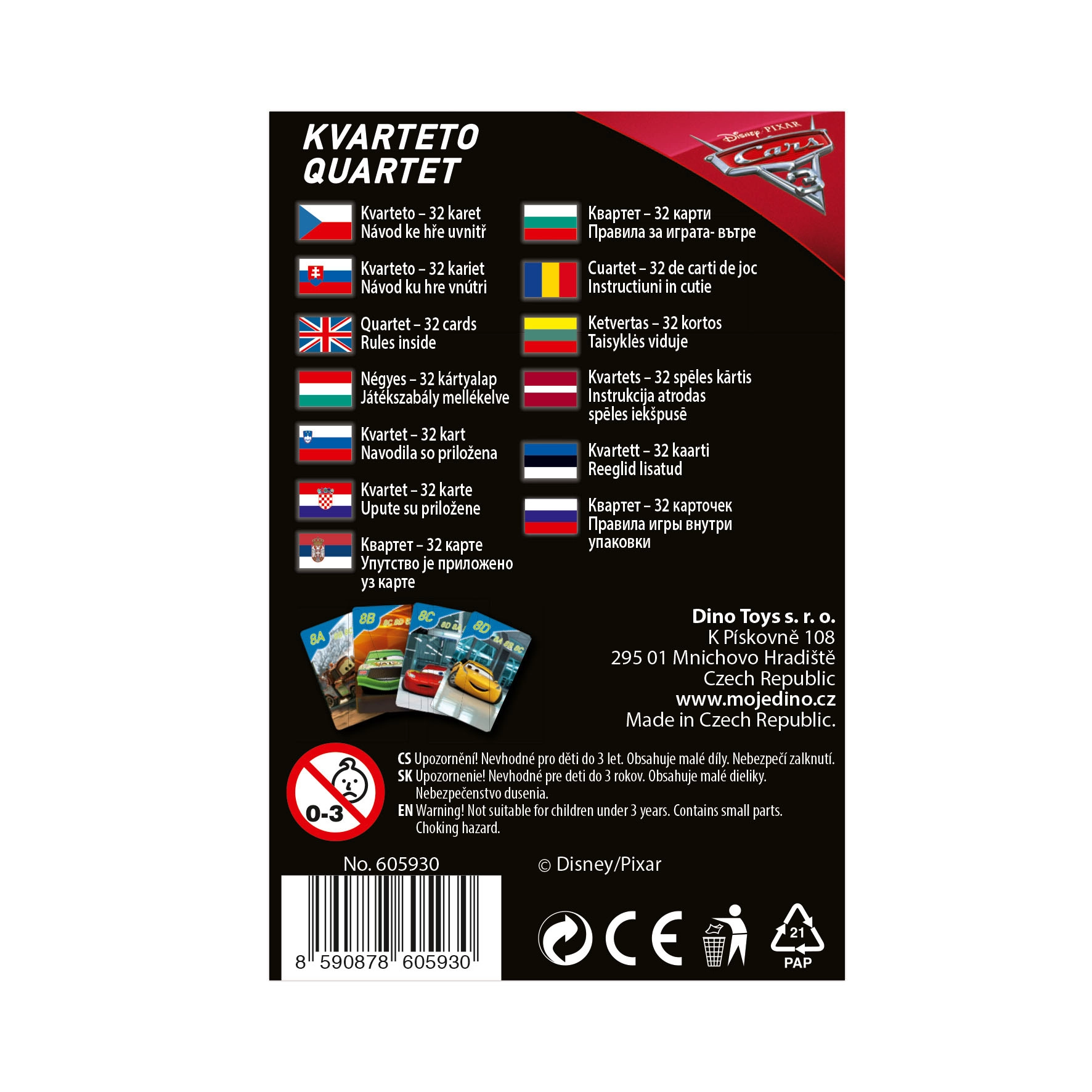 Η συσκευασία περιλαμβάνει 32 κάρτες σε χάρτινο κουτί και οδηγίες. Το προϊόν κατασκευάζεται στην Τσεχία, εξασφαλίζοντας υψηλή ποιότητα και ασφάλεια για τα παιδιά.