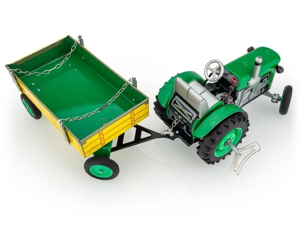 Αυτό το μοναδικό μοντέλο τρακτέρ κινείται με μηχανισμό κουρδίσματος με κλειδί, προσδίδοντας αίσθηση αυθεντικότητας στο παιχνίδι. Το λειτουργικό κιβώτιο ταχυτήτων με τρεις σχέσεις εμπρός και μία όπισθεν επιτρέπει στα παιδιά να χειρίζονται ρεαλιστικά το μοντέλο. Μπορούν να το οδηγήσουν μέσω του τιμονιού και να χρησιμοποιήσουν το χειρόφρενο για στάση. Χάρη στην κλίμακα 1:25, το μοντέλο αποδίδει πιστά τις λεπτομέρειες ενός πραγματικού τρακτέρ, αποτελώντας όχι μόνο ένα υπέροχο παιχνίδι αλλά και συλλεκτικό αντικείμενο.