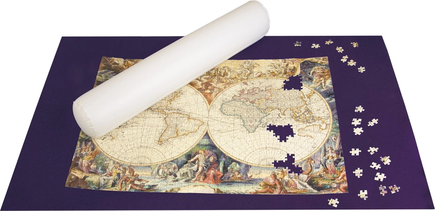 Το σετ περιλαμβάνει μοβ τσόχινη επιφάνεια 164 × 100 cm, φουσκωτό κύλινδρο 106 × 10 cm και 3 ιμάντες στερέωσης. Είναι κατάλληλο για παζλ έως 140 × 95 cm (περίπου 3.000 κομμάτια). Εξαιρετική επιλογή για όσους θέλουν να εξοικονομήσουν χώρο και ταυτόχρονα να έχουν το παζλ τους πάντα έτοιμο για συνέχεια.