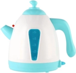 Ο βραστήρας είναι σχεδιασμένος σαν πραγματική οικιακή συσκευή με κομψό λευκό και τιρκουάζ χρωματικό συνδυασμό.