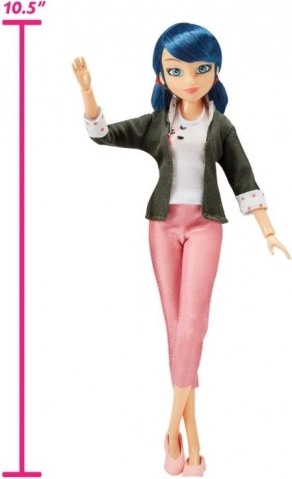Η αγαπημένη κούκλα Marinette από το Miraculous έρχεται με καθημερινά ρούχα και με κόκκινη στολή με πουά για μεταμόρφωση σε Ladybug. Χάρη στις κινούμενες αρθρώσεις, τα πλούσια αξεσουάρ και το ύψος περίπου 26 cm, τα παιδιά αναπαριστούν εύκολα σκηνές από τη σειρά και αναπτύσσουν φαντασία και δημιουργικό παιχνίδι.