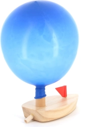 Φέρτε το παιχνίδι στο σπίτι με αυτή τη ξύλινη βαρκούλα με μπαλονάτη πρόωση. Τα παιδιά μπορούν εύκολα να φουσκώσουν το μπαλόνι, να το συνδέσουν στη βαρκούλα και να δουν πώς πλέει μπροστά. Αυτός ο απλός αλλά αποτελεσματικός σχεδιασμός διδάσκει στα παιδιά τον κανόνα της κίνησης ενώ τα διασκεδάζει. Ιδανικό παιχνίδι για διασκεδαστικές στιγμές στη μπανιέρα ή στην πισίνα.