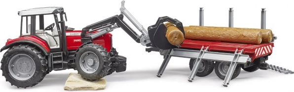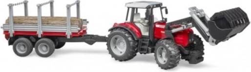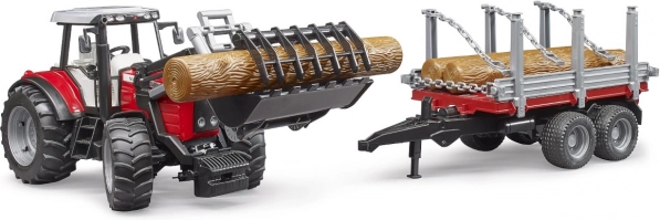 Ο μεταφορέας κορμών διαθέτει ανοιγόμενα πλευρικά τοιχώματα και ανατρεπόμενη καρότσα, ώστε ο χειρισμός του φορτίου να είναι διαισθητικός και διασκεδαστικός. Το σύστημα ρυμούλκησης του τρακτέρ ρυθμίζεται καθ’ ύψος και το ρυμουλκούμενο μπορεί να συνδεθεί και με άλλα τρακτέρ BRUDER. Η ποιοτική πλαστική κατασκευή εξασφαλίζει μεγάλη αντοχή και ασφαλές παιχνίδι.