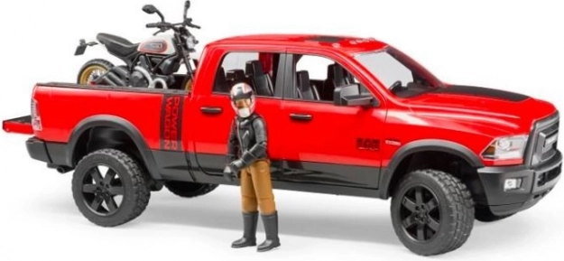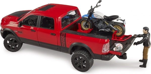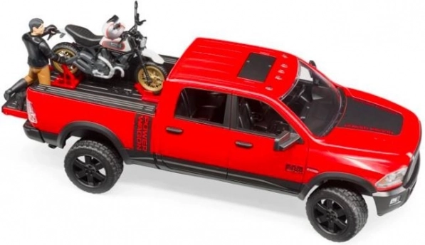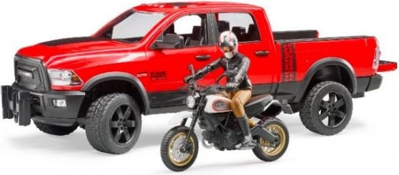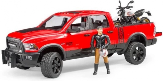 - pick‑up Ram, μοτοσικλέτα Ducati Scrambler, φιγούρα οδηγού