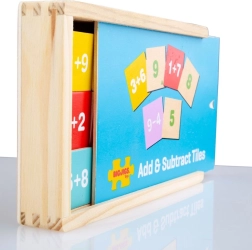 Ξύλινο εκπαιδευτικό σετ με 81 κομμάτια που προσφέρει ποικίλες δυνατότητες εξάσκησης στην πρόσθεση και αφαίρεση στο εύρος 1–9. Χάρη στο συμπαγές κουτί είναι ιδανικό για το σπίτι, το νηπιαγωγείο και τα ταξίδια. Τα παιδιά, μέσα από το παιχνίδι, εδραιώνουν βασικές μαθηματικές δεξιότητες και αναπτύσσουν τον συντονισμό χεριού-ματιού.