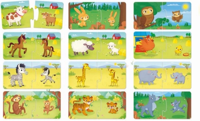 Διασκεδαστικό εκπαιδευτικό παιχνίδι για τους μικρότερους: ταιριάξτε τις ζωικές μαμάδες με τα μικρά τους και αναπτύξτε τη σκέψη των παιδιών. Περιλαμβάνει 24 κομμάτια, κατασκευασμένα από ασφαλή υλικά, κατάλληλο για παιδιά από 1 έτους. Εξαιρετική επιλογή για την υποστήριξη της λογικής, της λεπτής κινητικότητας και της οπτικής αντίληψης.