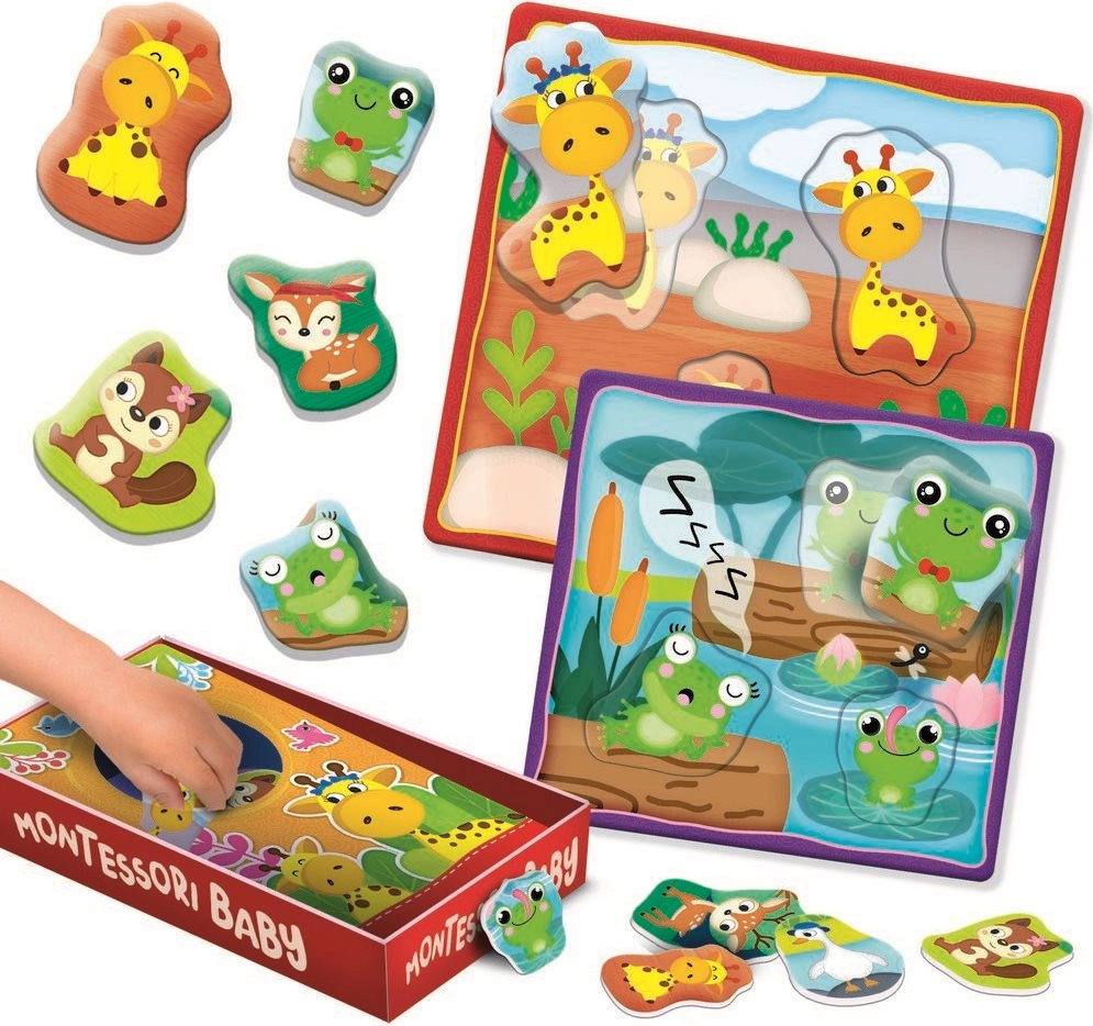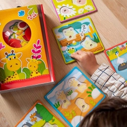 Ανακαλύψτε ένα παιγνιώδες διδακτικό σετ, όπου τα παιδιά ταιριάζουν τα μωρά με τη μαμά και τον μπαμπά τους, γνωρίζουν τα ζώα και το φυσικό τους περιβάλλον ενώ εξασκούν υπομονή, προσοχή και λεπτή κινητικότητα. Το σετ έχει σχεδιαστεί για τους μικρότερους – τα απλά περιγραμματικά κομμάτια κρατιούνται εύκολα και μπαίνουν χωρίς δυσκολία.