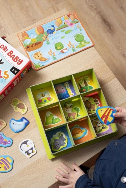 Το κουτί Montessori Ζωάκια φέρνει στα παιδιά τον πολύχρωμο κόσμο της φύσης μέσα από απλή ταξινόμηση και αντιστοίχιση. Τα παιδιά μαθαίνουν να ξεχωρίζουν τα ζώα και τα φυσικά τους περιβάλλοντα, αναπτύσσουν λογική σκέψη και τον συντονισμό χεριού–ματιού. Χάρη στον πολύχρωμο και διαισθητικό σχεδιασμό, το παιχνίδι γίνεται εύκολα κατανοητό ακόμη και από τους μικρότερους.