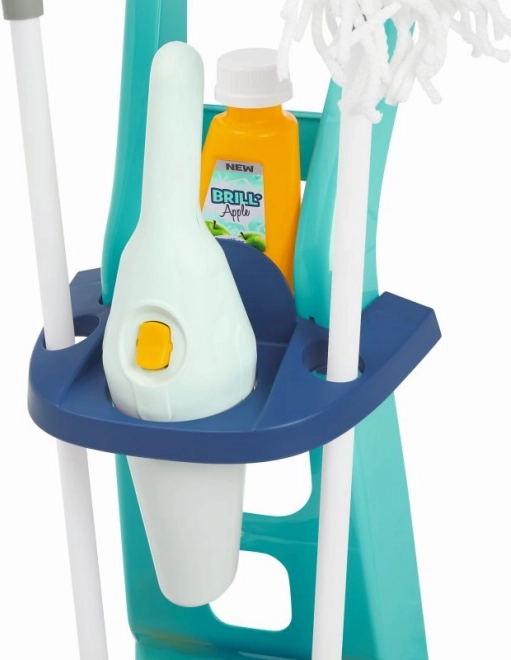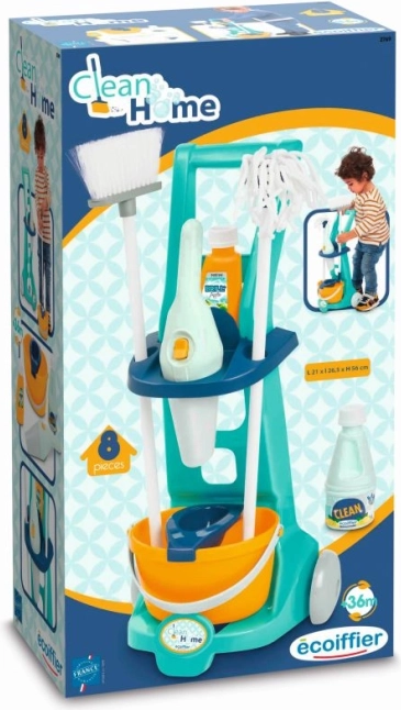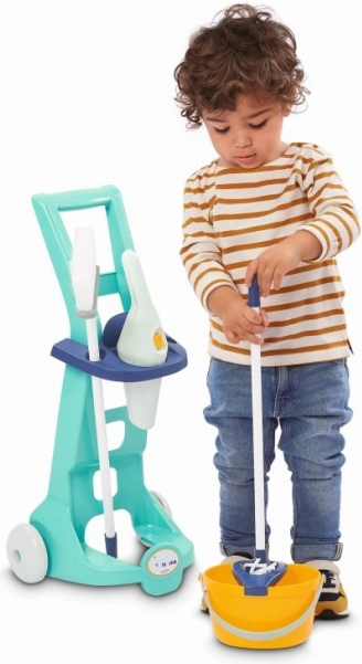 Αυτό το παιδικό καροτσάκι καθαρισμού περιέχει όλα τα απαραίτητα για παιχνίδι καθαρισμού - κουβά, σφουγγαρίστρα, σκουπάκι, καθαριστικά και χειροκίνητη ηλεκτρική σκούπα. Είναι ελαφρύ και εύκολο στον χειρισμό, ιδανικό για παιδιά από 3 ετών.