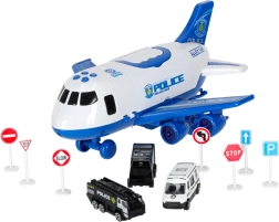 Το μεγάλο αστυνομικό μεταγωγικό αεροπλάνο για μικρούς ήρωες μεταφέρει όλο το πλήρωμα και τα οχήματα απευθείας στο σημείο δράσης. Προσφέρει ανοιγόμενο πλαϊνό πάνελ, οπίσθια ράμπα φόρτωσης, φώτα και ήχους και στο εσωτερικό χώρο για 3 αστυνομικά αυτοκίνητα και 7 σήματα κυκλοφορίας. Υπέροχο παιχνίδι για δημιουργικό role-play και εκμάθηση των κανόνων οδικής κυκλοφορίας.