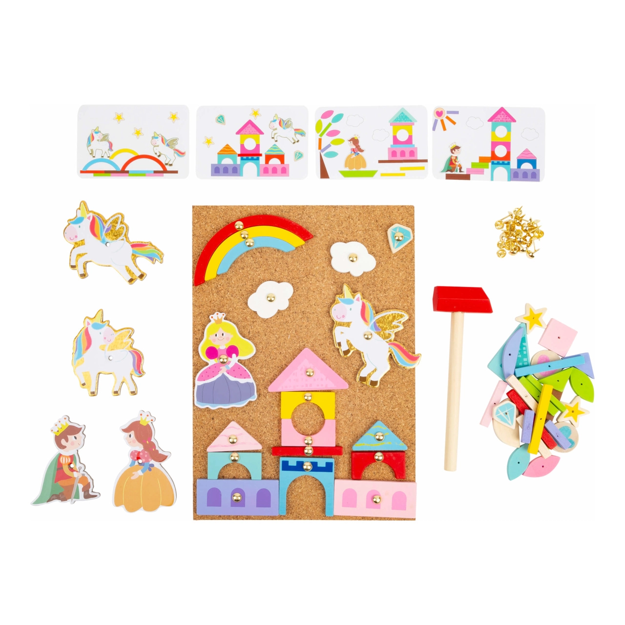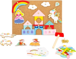 Βουτήξτε στον μαγικό κόσμο της δημιουργικής διασκέδασης με το Παιχνίδι Καρφώματος Μονόκερος. Αυτό το παιχνίδι επιτρέπει στα παιδιά σας να δημιουργούν διάφορες σκηνές και ιστορίες με τη βοήθεια του σφυριού και των πολύχρωμων ξύλινων σχημάτων. Το σετ περιλαμβάνει επίσης πρότυπα που μπορούν να εμπνεύσουν τα παιδιά να δημιουργήσουν παραμυθένιες εικόνες.