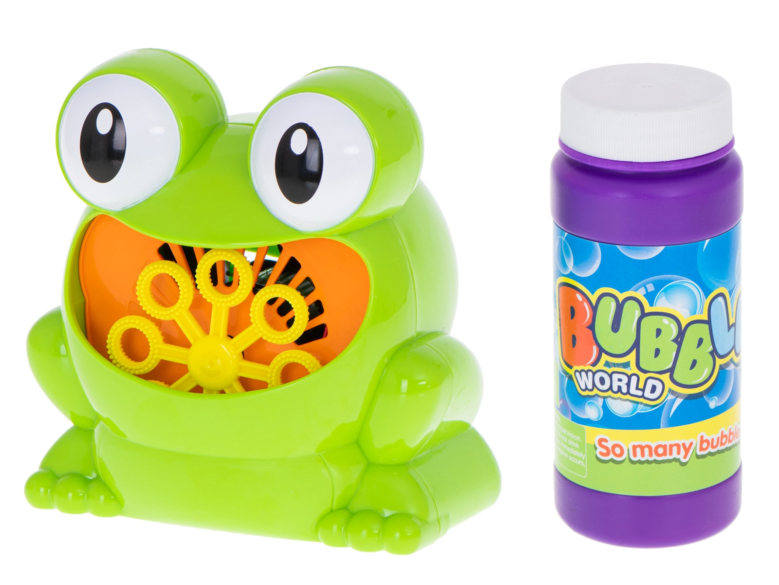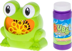 Μετά την προσθήκη του διαλύματος και το πάτημα του κουμπιού, το βατραχάκι ξεκινά αμέσως να βγάζει πολύχρωμες φυσαλίδες – ιδανικό για καθημερινό παιχνίδι και γιορτές.