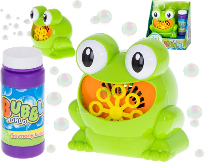 Το χαρούμενο πράσινο βατραχάκι με τα μεγάλα μάτια ζωντανεύει κάθε παιδικό πάρτι και προσελκύει τους μικρούς «μάγους» των φυσαλίδων.
