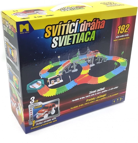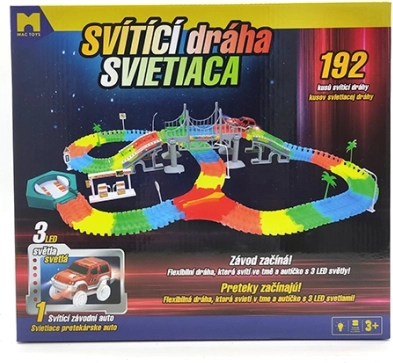 Ξεκινήστε τη διασκέδαση μέρα και νύχτα με τη φωτεινή πίστα 192 κομματιών! Χάρη στα μεταβλητά τμήματα θα συνθέσετε εύκολα πρωτότυπες διαδρομές και η πίστα, αφού «φορτιστεί» με φως, λάμπει στο σκοτάδι. Περιλαμβάνεται αυτοκινητάκι με τρία LED φώτα, που δημιουργεί πολύχρωμο φωτεινό εφέ και ενισχύει τη φαντασία και τις κινητικές δεξιότητες των παιδιών. Κατάλληλο από 3 ετών.