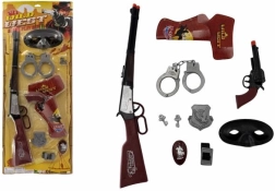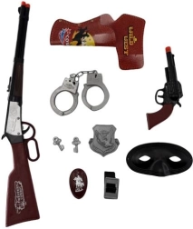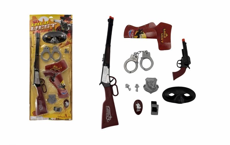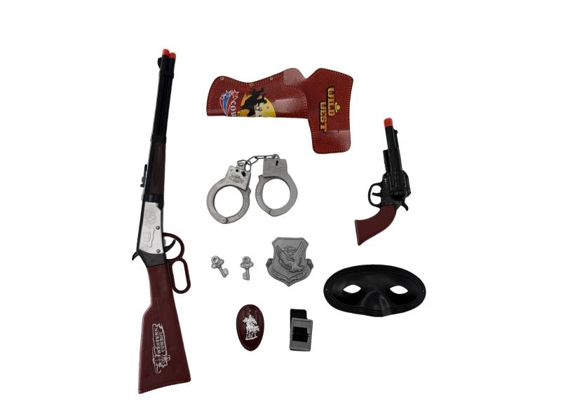Διασκεδαστικό σετ για μικρούς καουμπόηδες που περιλαμβάνει πιστόλι, χειροπέδες και κολτ για ευφάνταστα παιχνίδια Άγριας Δύσης. Ιδανικό για παιδικές μεταμφιέσεις και περιπέτειες στο σπίτι. Υποστηρίζει την δημιουργικότητα, το παιχνίδι ρόλων και την ασφαλή διασκέδαση.