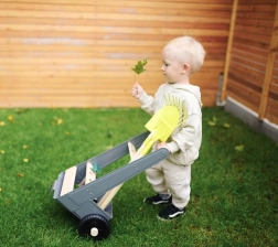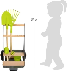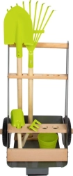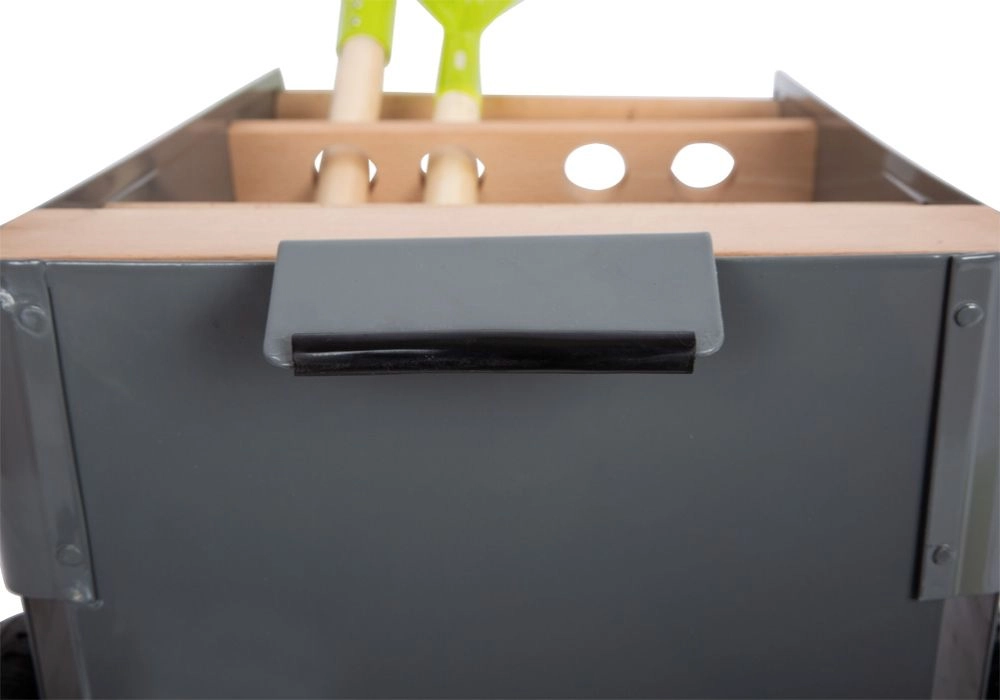 Αυτό το κηπουρικό καροτσάκι επιτρέπει στους μικρούς κηπουρούς να εργαστούν στο ονειρεμένο τους παρτέρι. Το σταθερό καροτσάκι από οξιά και μέταλλο μπορεί να σπρωχτεί ή να τραβηχτεί εύκολα στον κήπο, καθώς είναι εξοπλισμένο με ανθεκτικούς τροχούς. Περιλαμβάνει 5 τεμάχια εργαλείων για ασφαλές και διασκεδαστικό κηπουρικό παιχνίδι.