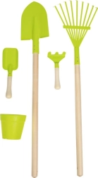- Το σετ περιλαμβάνει τσουγκράνα, φτυάρι, πλαστική γλάστρα, σκαλιστήρι και μικρή τσουγκράνα.