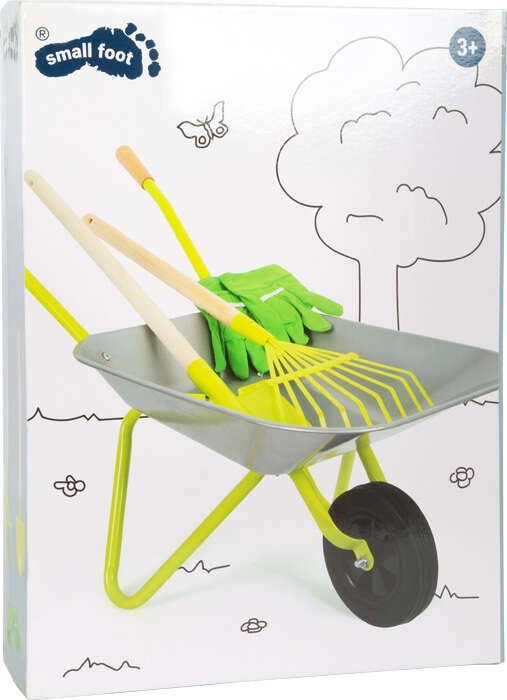 Ανακαλύψτε το ποιοτικό παιδικό σετ κηπουρικής SMALL FOOT με μεταλλικό καροτσάκι, φτυάρι, τσουγκράνα και βαμβακερά γάντια – ιδανικό για τους μικρούς βοηθούς στον κήπο. Το σετ είναι κατασκευασμένο κυρίως από μέταλλο, είναι ανθεκτικό, ασφαλές και προσφέρει υπέροχη διασκέδαση σε πραγματικές εργασίες κηπουρικής. Σταθερή μεταλλική κατασκευή, καροτσάκι περίπου 10 l / αντοχή έως 15 kg και εργονομικές ξύλινες λαβές διευκολύνουν τον χειρισμό και υποστηρίζουν την ανάπτυξη δεξιοτήτων των παιδιών.