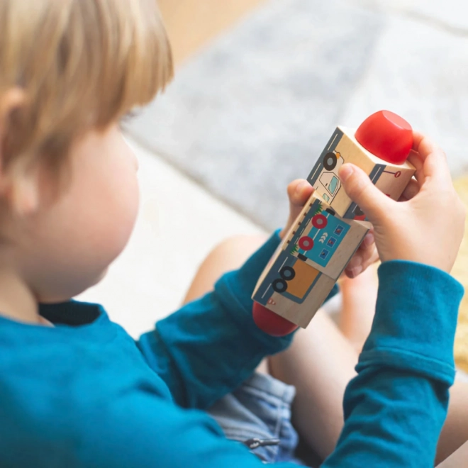 Το παιχνίδι είναι κατασκευασμένο από ποιοτικό ξύλο από υπεύθυνες πηγές και πληροί τα σύγχρονα ευρωπαϊκά πρότυπα ασφαλείας. Τα παιδιά μπορούν να συνθέτουν σωστούς συνδυασμούς ή να αναμειγνύουν επίτηδες τις εικόνες για να δημιουργούν χαριτωμένες «νέες» μηχανές – η διασκέδαση δεν τελειώνει ποτέ.