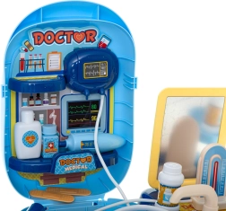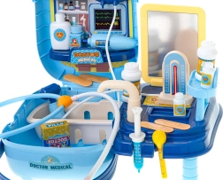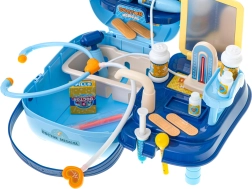 Σετ γιατρού για παιδιά σε πρακτική βαλιτσούλα, που μετατρέπει κάθε παιχνίδι σε ιατρείο. Δημιουργικό παιχνίδι που βοηθά τα παιδιά να γνωρίσουν βασικά ιατρικά εργαλεία και διαδικασίες. Χάρη στη φορητή βαλιτσούλα, τα παιδιά μπορούν να παίξουν “στον γιατρό” στο σπίτι ή με φίλους.