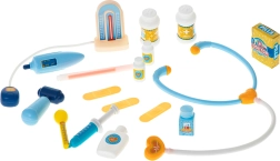 Το σετ γιατρού περιλαμβάνει όλα τα απαραίτητα εργαλεία για παιχνίδι “στον γιατρό”, όπως στηθοσκόπιο, θερμόμετρο, σύριγγα κι άλλα.