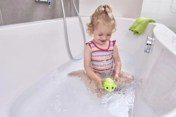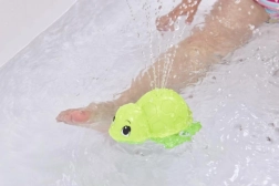 Το χελωνάκι επιπλέει στην επιφάνεια και ψεκάζει απαλά νερό – ιδανικό για ένα διασκεδαστικό μπάνιο και τα πρώτα παιχνίδια με το νερό.