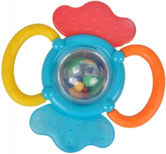 Συνδυασμός κουδουνίστρας και μασητηριού σε ένα, ιδανικό για παιδιά από 3 μηνών. Προσφέρει διασκέδαση και υποστηρίζει την αισθητηριακή ανάπτυξη του παιδιού.