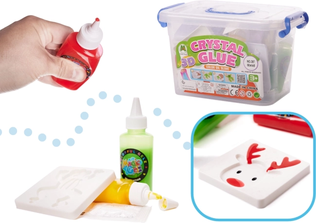 Με αυτό το σετ θα ξυπνήσετε τη φαντασία και θα δημιουργήσετε εύκολα πολύχρωμες 3D φιγούρες που θυμίζουν σιλικόνη. Αρκεί να ετοιμάσετε το διάλυμα με πηκτικό, να γεμίσετε το καλούπι με αγαπημένα χρώματα και να το βυθίσετε για λίγες στιγμές. Τα σχέδια στερεοποιούνται και μπορούν αμέσως να χρησιμοποιηθούν για παιχνίδι, ως διακόσμηση ή για την κατασκευή πρωτότυπων αξεσουάρ.