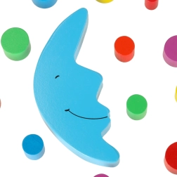 Διασκεδαστικό παιχνίδι Μοντεσσόρι για παιδιά και γονείς: ξύλινο ισορροπιακό φεγγαράκι, πάνω στο οποίο τοποθετείτε πολύχρωμα κυβάκια σύμφωνα με τη ρίψη του ζαριού. Αναπτύσσει τη λεπτή κινητικότητα, τον οφθαλμοχειρικό συντονισμό και τη χωρική αντίληψη. Ποιοτική ξύλινη κατασκευή με λείες άκρες και ζωντανά χρώματα για ασφαλές και χαρούμενο παιχνίδι.