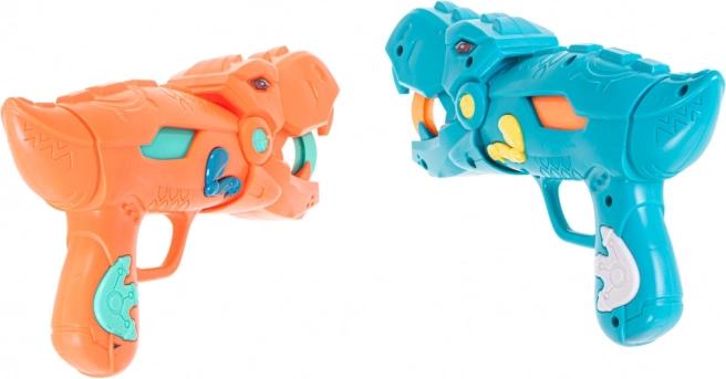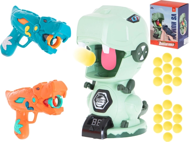 Δύο στιλάτα πιστόλια σε σχήμα δεινοσαύρου επιτρέπουν την ασφαλή και αποτελεσματική εκτόξευση μαλακών αφρώδων μπαλιών. Ιδανικά για παιχνίδι σε ζευγάρια και για διαγωνισμούς.