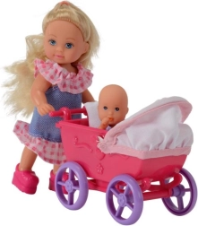 Ανακαλύψτε τον κόσμο της φροντίδας με την κούκλα Evi, που φροντίζει το μωρό της σε ένα όμορφο βαθύ καροτσάκι. Αυτό το ακαταμάχητο σετ παιχνιδιού προσφέρει ώρες διασκέδασης και αναπτύσσει τη φαντασία των παιδιών.