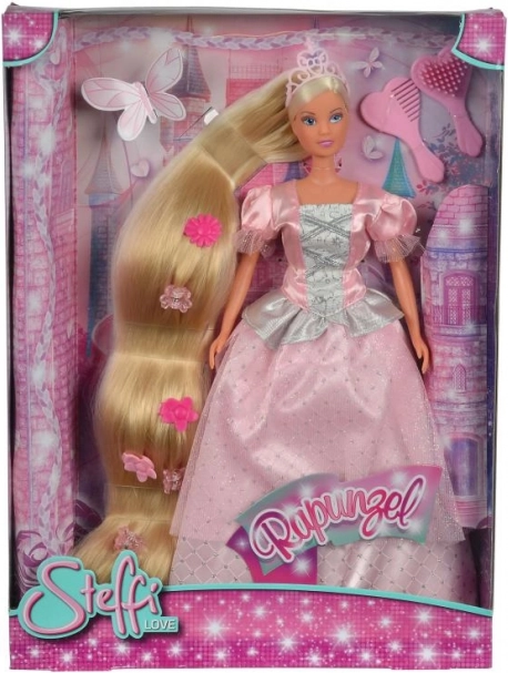 Η κούκλα Steffi Ραπουνζέλ έχει υπέροχα ξανθά μαλλιά, που μπορείτε να χτενίζετε και να διαμορφώνετε όπως φαντάζεστε. Έρχεται σε ύψος 30 εκ., ντυμένη με κομψό βραδινό φόρεμα με στρας και ολοκληρώνεται με ταιριαστό στέμμα. Τα μακριά της μαλλιά είναι ιδανικά για τη δημιουργία εντυπωσιακών χτενισμάτων.