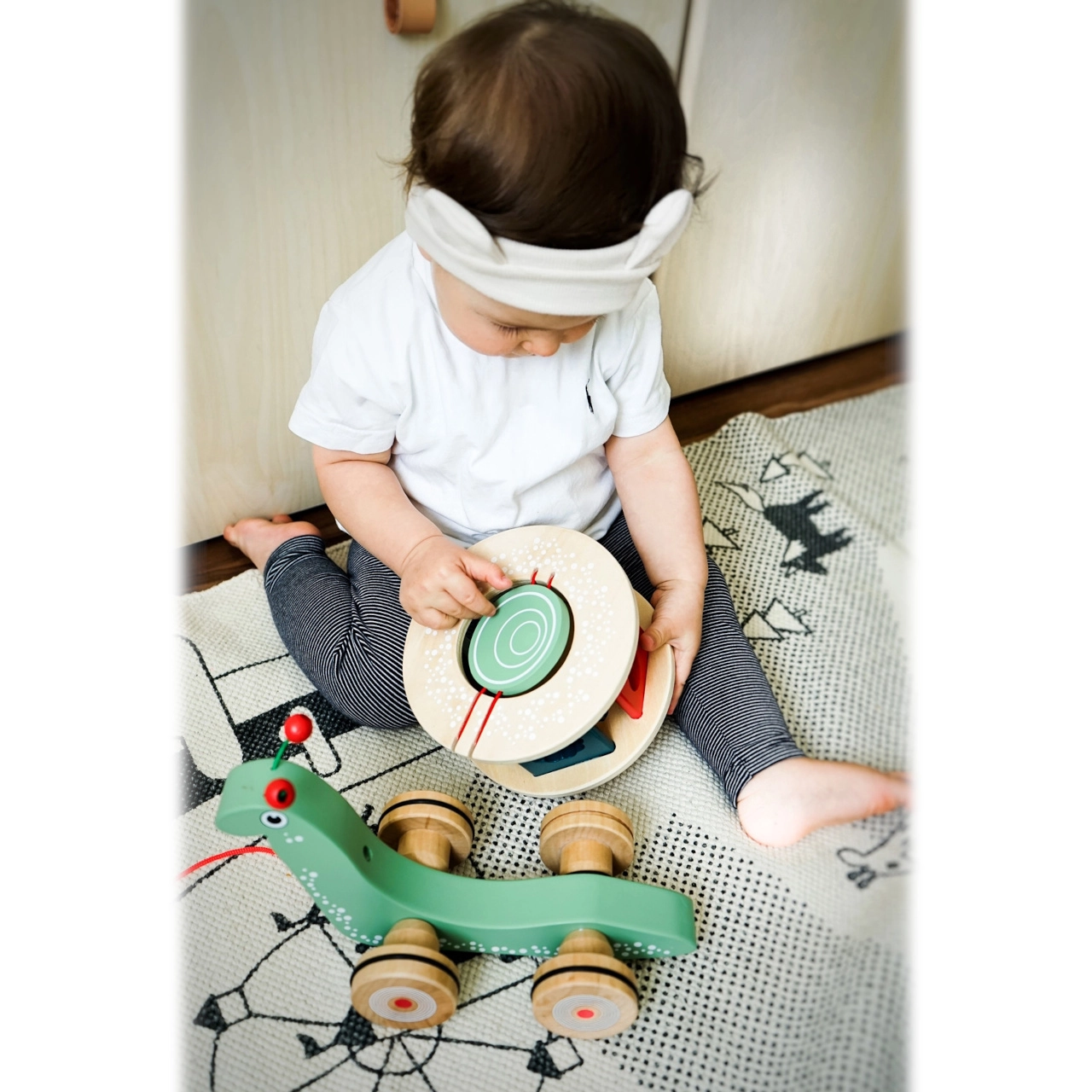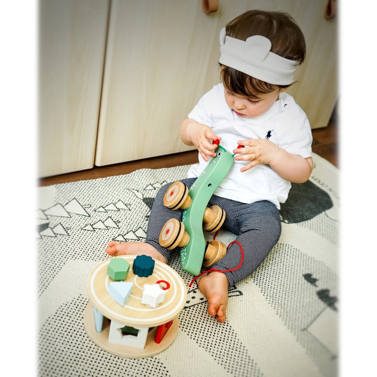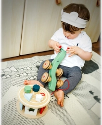 Σας παρουσιάζουμε το χαριτωμένο ξύλινο σαλιγκάρι με κορδόνι, που όχι μόνο διασκεδάζει αλλά και βοηθά στην ανάπτυξη του παιδιού σας. Χάρη στη λεπτή κατασκευή και τους τροχούς που περιστρέφονται εύκολα, είναι ιδανικό για παιδιά που ξεκινούν το περπάτημα και ενισχύει τον συντονισμό και την ισορροπία τους. Επιπλέον, το σαλιγκάρι λειτουργεί ως ταξινομητής με πέντε διαφορετικά σχήματα, ενισχύοντας τις γνωστικές ικανότητες και τη λεπτή κινητικότητα.