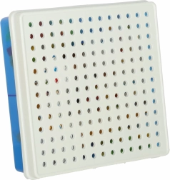 Μεγάλο σετ χρωματιστών βιδών, πλακιδίων και κομματιών σε διάφορα σχήματα που ξυπνούν τη δημιουργικότητα και ενθαρρύνουν την αυτόνομη κατασκευή μωσαϊκών και μοντέλων.