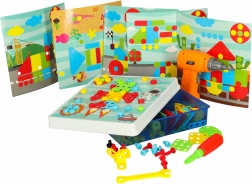 Το σετ με τη μοζαϊκή βάση επιτρέπει στα παιδιά με τη βοήθεια του παιχνιδιάρικου τρυπανιού, του κατσαβιδιού και του κλειδιού να βιδώνουν πολύχρωμες βίδες και να δημιουργούν ποικίλες εικόνες και τρισδιάστατα μοντέλα. Ζωντανέψτε τη φαντασία των παιδιών – το μόνο όριο είναι η φαντασία του μικρού κατασκευαστή.