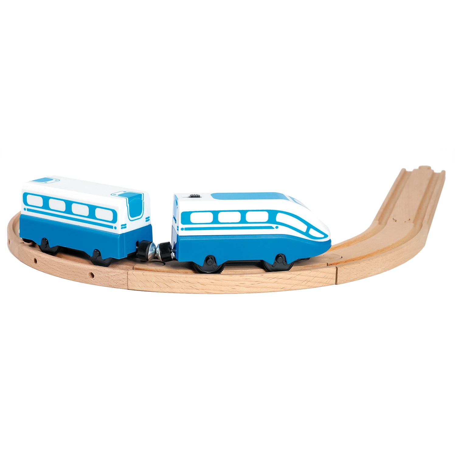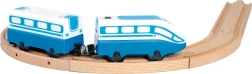 Αυτή η ηλεκτρική μηχανή υψηλής ταχύτητας με βαγόνι είναι ιδανικό συμπλήρωμα για κάθε ξύλινη σιδηροδρομική πίστα. Χάρη στις συμπαγείς διαστάσεις, τον εύκολο χειρισμό και τη μαγνητική σύνδεση του βαγονιού, προσφέρει στα παιδιά ώρες διασκέδασης ενώ αναπτύσσει τη λεπτή κινητικότητα και τη φαντασία.