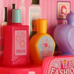 Περιλαμβάνονται χτενάκια, καθρεφτάκι, μπουκαλάκια, αξεσουάρ για τα μαλλιά και άλλα μικροαντικείμενα για ρεαλιστικό παιχνίδι κομμωτηρίου και καλλυντικών.